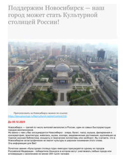 Поддержим Новосибирск-наш город может стать Культурной столицей России! 21.11.2025